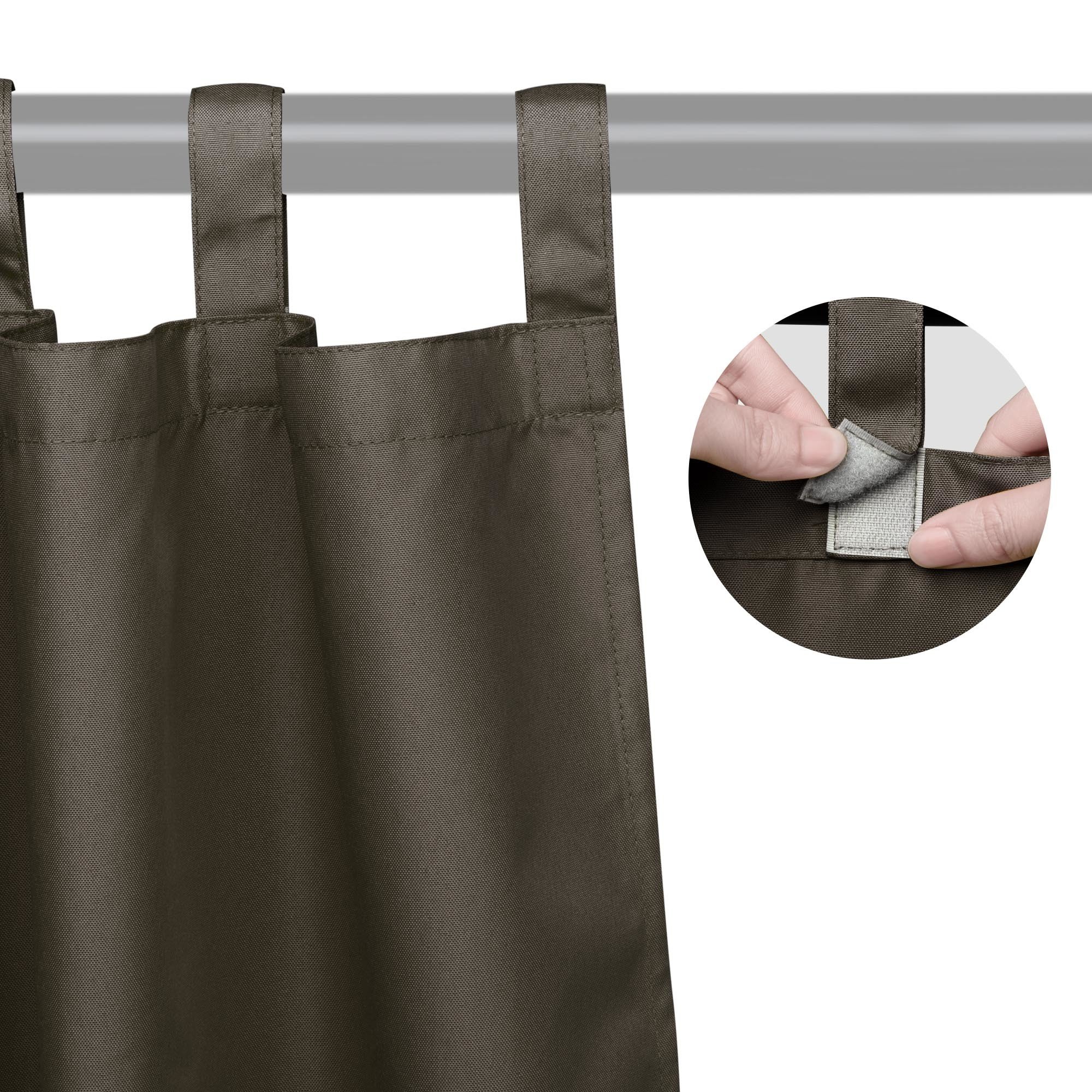 - Hook & Loop Fastener for Easy Installing - 2 pcs 54"x84" Outdoor Curtain Panels; tab top with hook & loop fastener; much easier for attaching to the rod; 4" long tab top perfectly fit curtain rod with diameter up to 2"