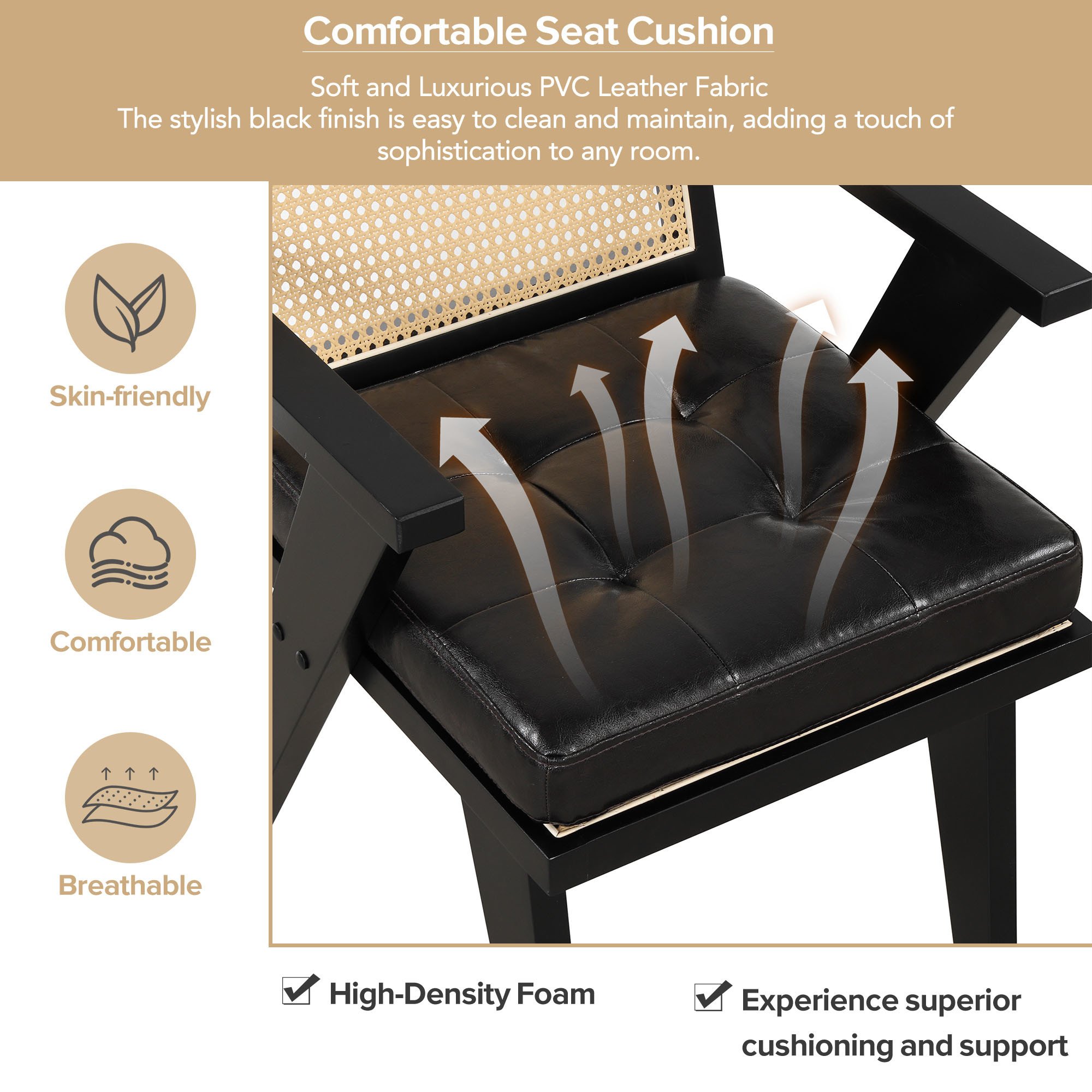 Mid-Century Modern Style - The rubber wood backrest frame design with hand-woven rattan creates a natural feeling. The breathable rattan back helps ventilate and dissipate heat from the room, keeping you cool and dry while sitting. The multi-function accent chair combines retro and modern elements, easy to match a variety of environments, being your charming point at home everywhere.
