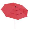 - Energy-saving Solar LED Umbrella - 10 ft 3 Tier Patio Umbrella features LED lights on ribs, powered by solar panel, charging during day to provide efficient illumination at dusk and night, eco-friendly and energy saving