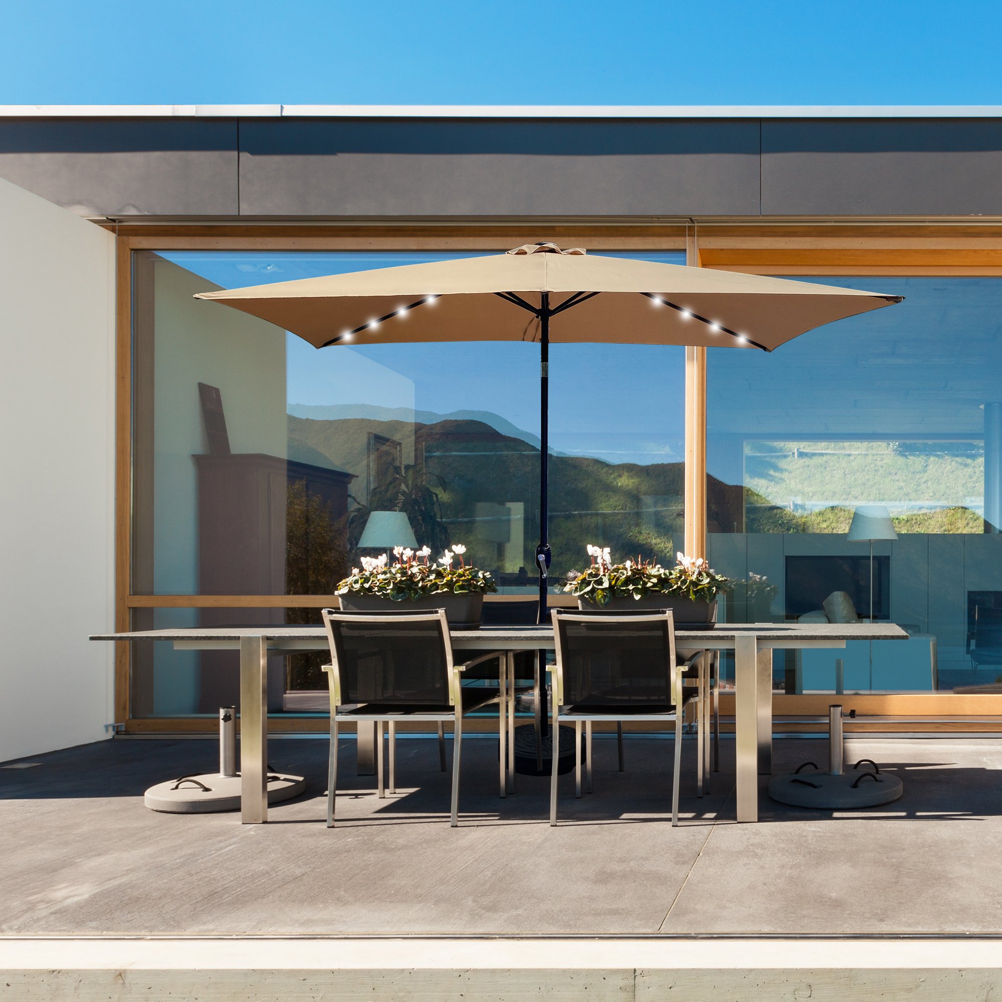The unique 10x6.5ft rectangle umbrella is offers quite different feeling comparing to the round umbrella, and provides an extra wide range of shade for you to enjoy outdoor scenery and create a comfortable outdoor dining experience. Ideal for patio tables, patio, back yard, garden, porch, cafe, coffee shop, deck, beach, ranch, balcony and any outdoor area with shading & decorating needs