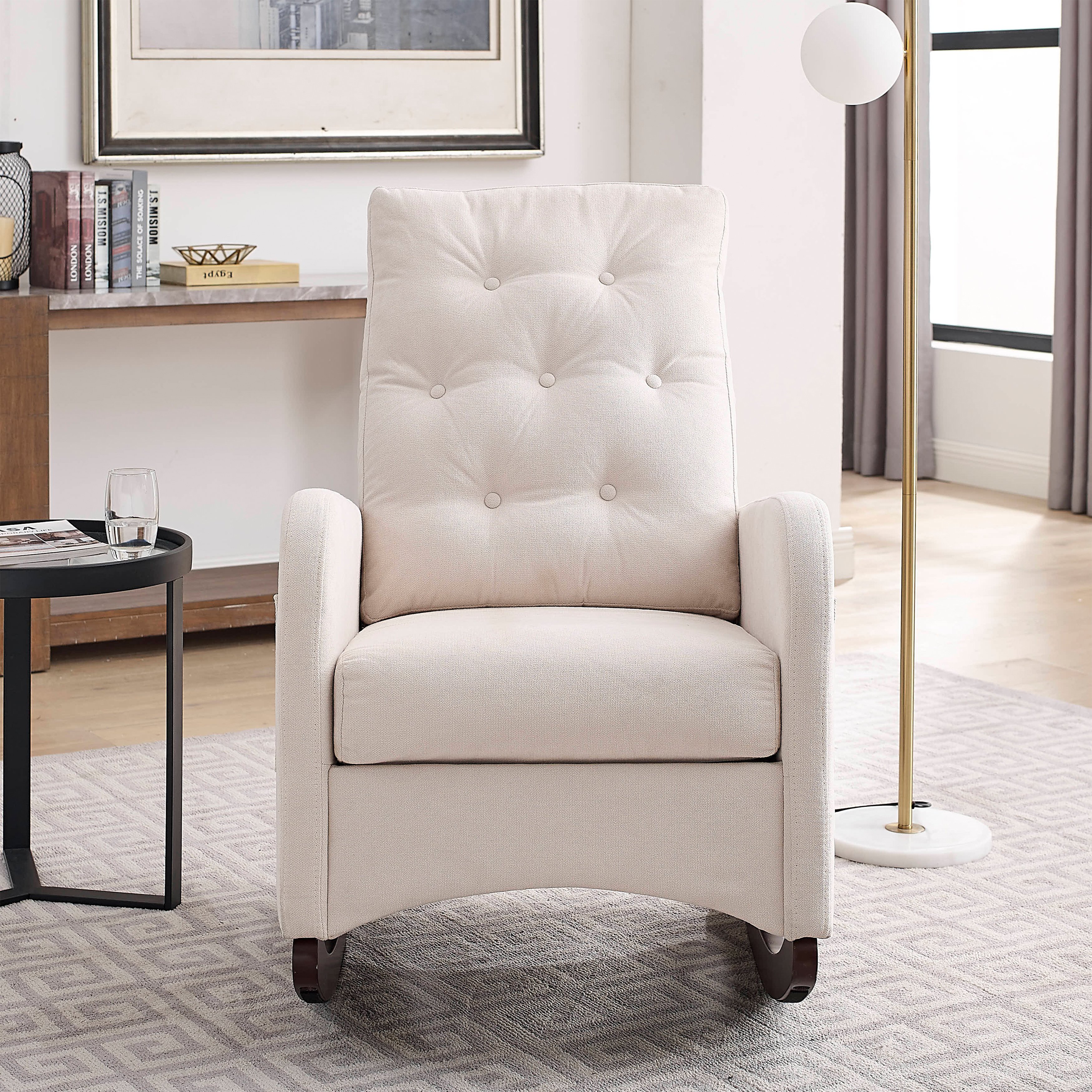 ★[Gently rocking, more comfortable] This rocking chair has an excellent curved design with non-slip feet under the base, making it rock gently and smoothly. Such a thoughtful design is very suitable for leisure or childcare, effectively relieving you of the fatigue of the day.